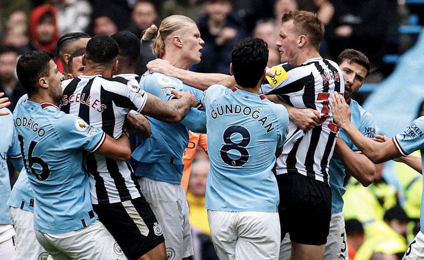 Este incidente ocurrió sobre el final del encuentro, ya en el agregado el City cobró tres tiros de esquina en corto, Haaland quiso cubrir el balón y negoció los corners, lo que despertó la euforia de los hinchas y el enojo en los defensas del Newcastle, incluido Dan Burn.