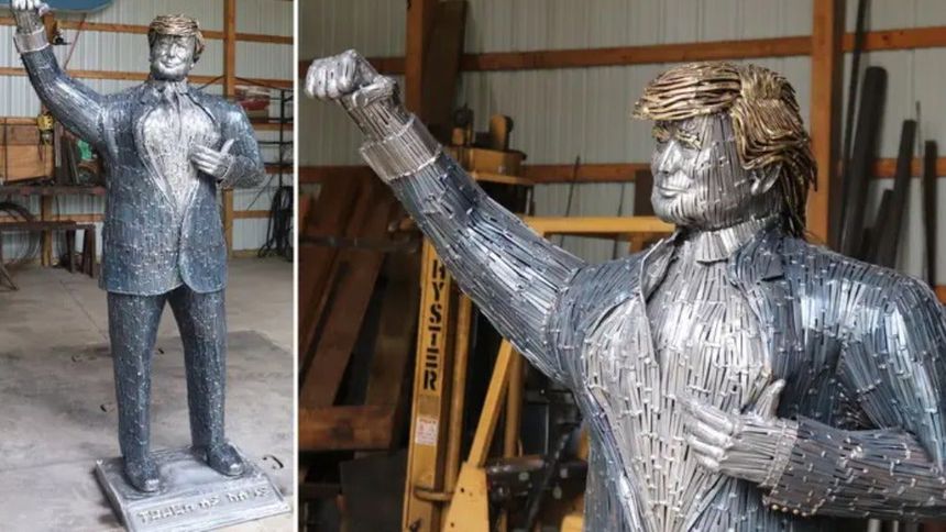 Un artista local, es el autor de la obra quien describe a Donald Trump como "duro como una roca" después de que el ex presidente alzó el puño tras un intento de asesinato, así creó una escultura de tamaño humano para recordar el momento y resaltar ese dicho.