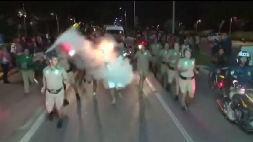 Una persona intentó apagar la antorcha olímpica con un extintor mientras hacía su recorrido por las calles de Brasil; sin embargo, fue detenido por las autoridades.