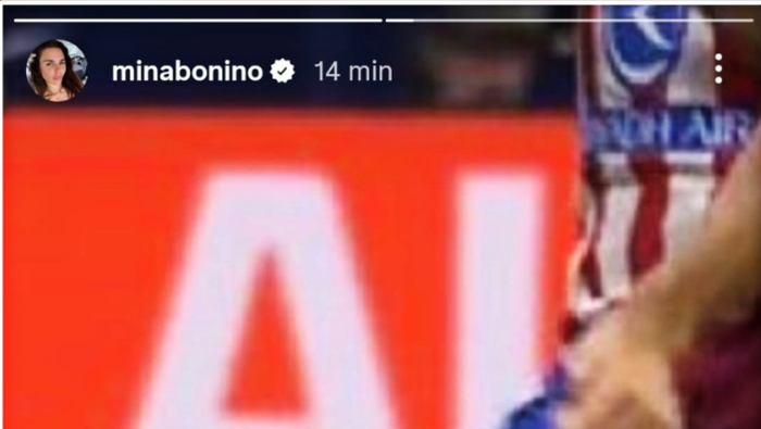 Luego de que se revelaron las tomas de una posible roja a Gerard Martín, Mina Bonino escribió en su cuenta de Instagram el mensaje de : “Tenes que cerrar el estadio si es no es roja”, esto acompañado de la foto de la plancha con los tachones por delante del jugador español.