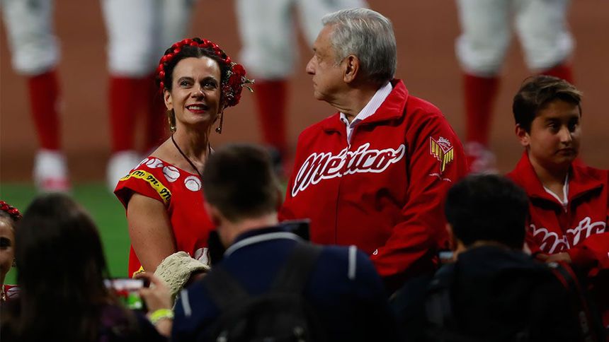 Esposa de Harp Helú luce vestido oaxaqueño con figuras de beisbol