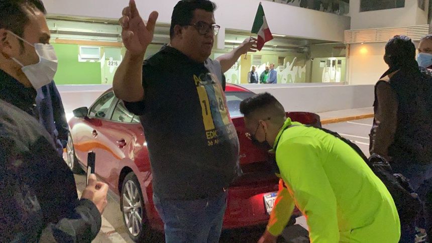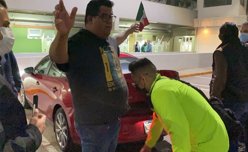 Elementos de seguridad revisando a los aficionados mexicanos | AGENCIA RÉCORD | MIGUEL PONTÓN