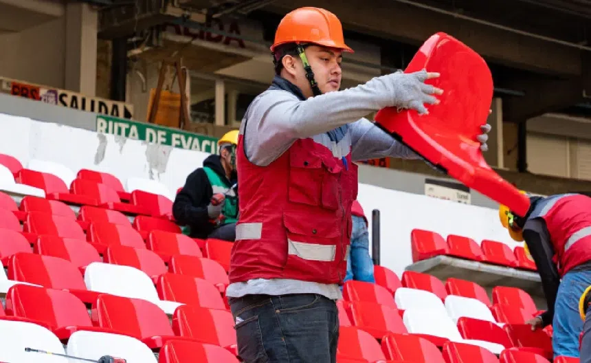 Asimismo dejan ver el trabajo que siguen realizando los trabajadores en el interior entre el atornillado con la repartición de los plásticos que cuentan con un respaldo para la comodidad de los aficionados pero sin reposabrazos.