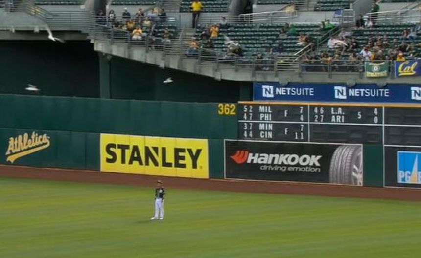 El O.co Coliseum, casa de los Atléticos en las Grandes Ligas, fue invadido por gaviotas durante el juego entre Oakland y los Rockies de Colorado.