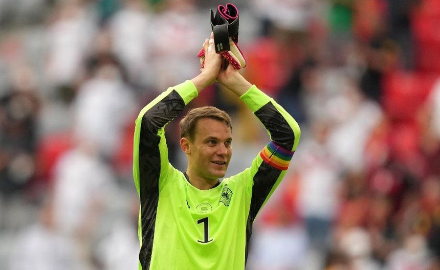 Neuer, capitán del conjunto germano, eligió un brazalete con los colores de la bandera del colectivo LGBT en señal de apoyo al mismo.