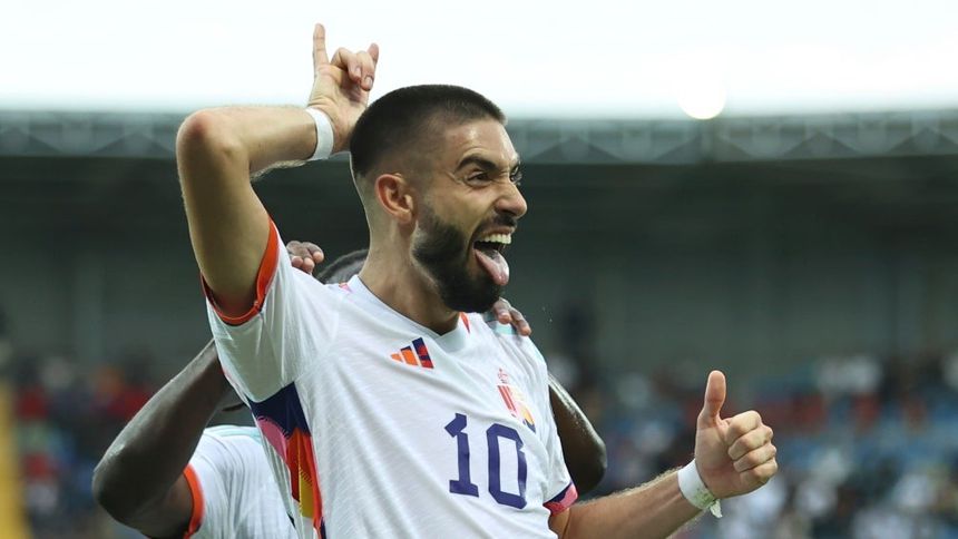 Yannick Carrasco le otorgó la victoria al cuadro belga con un gol frente a Azerbaiyán luego de que al 38' el delantero desvió la pelota tras un centro de Johan Bakayoko y de manera fortuita el balón se incrustó en las redes para marcar el único gol del partido y darle el triunfo a Bélgica.