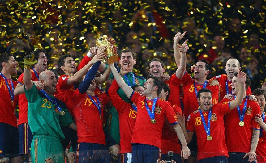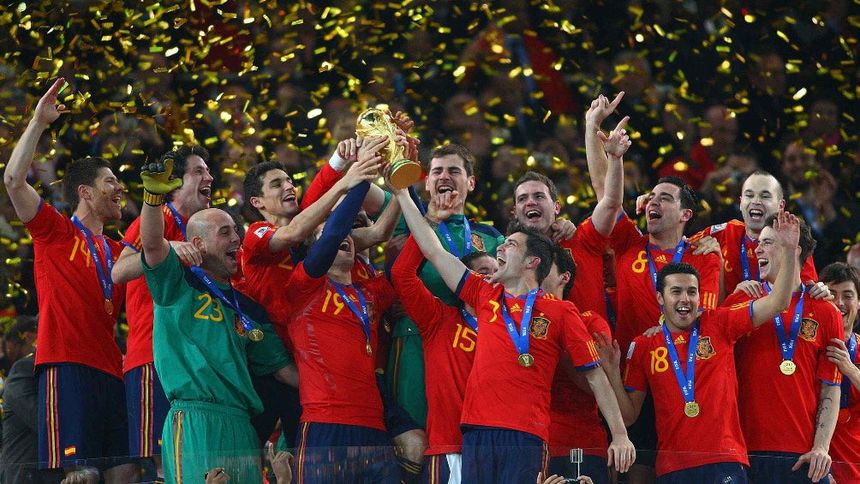 La Primera vez que España se consagró fue en la Eurocopa de 1964, donde en el Santiago Bernabéu consiguieron su primera corona. El segundo título fue en 2008, en la Eurocopa de Austria-Suiza. La época dorada de La Roja continuaría dos años después, cuando se consagraron Campeones del Mundo en Sudáfrica 2010.