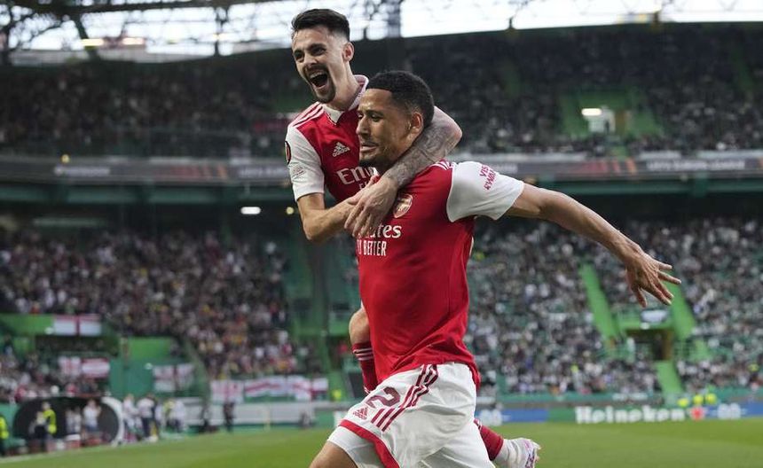 William Saliba festejando con Fabio Vieira | AP
