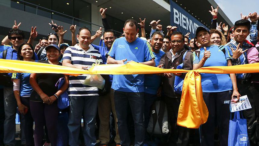 Horacio de la Vega, director del Instituto del Deporte de la Ciudad de México, cortó el listón para inaugurar la Expo Maratón, la cual en esta ocasión se lleva a cabo en el Autódromo Hermanos Rodríguez.