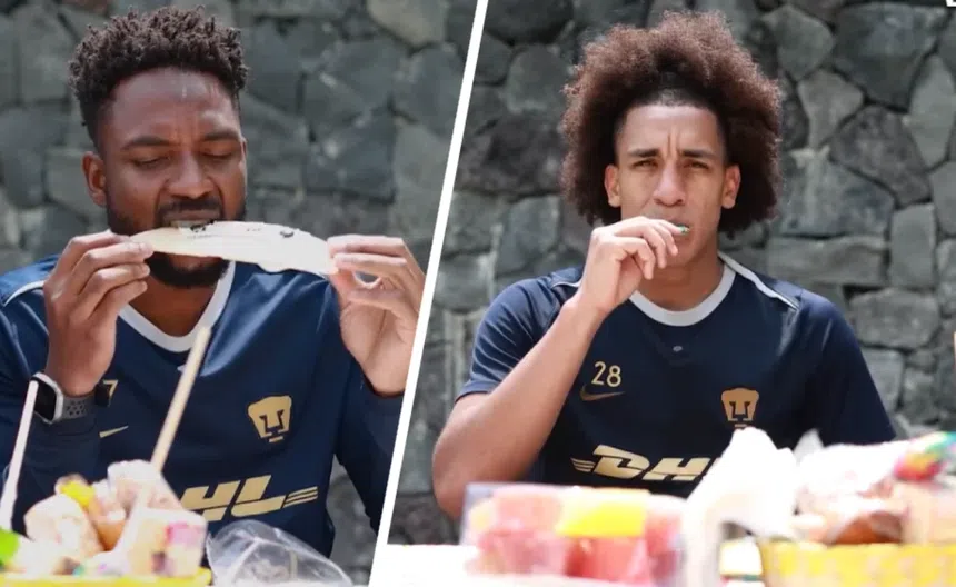 Los extranjeros de Pumas, Nathan Silva, Adalberto Carrasquilla, Pedro Vite y Álvaro Angulo, junto al auxiliar técnico Alex Larrea, se animaron a probar algunos de los sabores más tradicionales de México. Del otro lado, sus compañeros mexicanos Santiago Trigos, Pablo Benevendo, Ángel Rico, Santiago López y Luis Pérez fueron los encargados de guiarlos (y reírse un poco) con cada reacción.