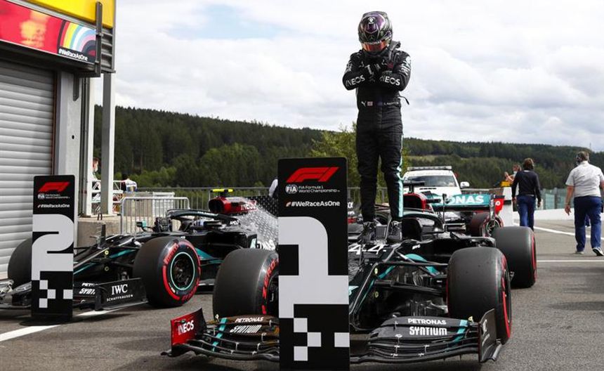 Hamilton amplió a 93 su propio récord histórico de 'poles' en la categoría y firmó la sexta en Spa al cubrir los 7 mil metros de la mítica pista belga en un minuto, 41 segundos y 252 milésimas, 511 menos que su compañero finlandés Valtteri Bottas, que saldrá junto a él desde la primera fila.