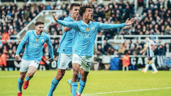 Bobb celebra el tercer gol del City