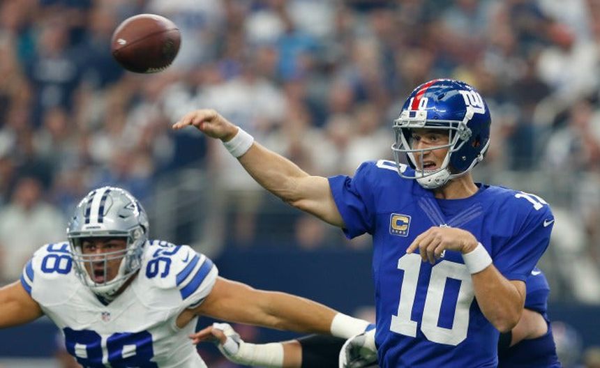 Eli Manning, QB de Gigantes de Nueva York, lanza el ovoide | AP