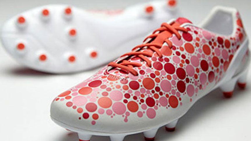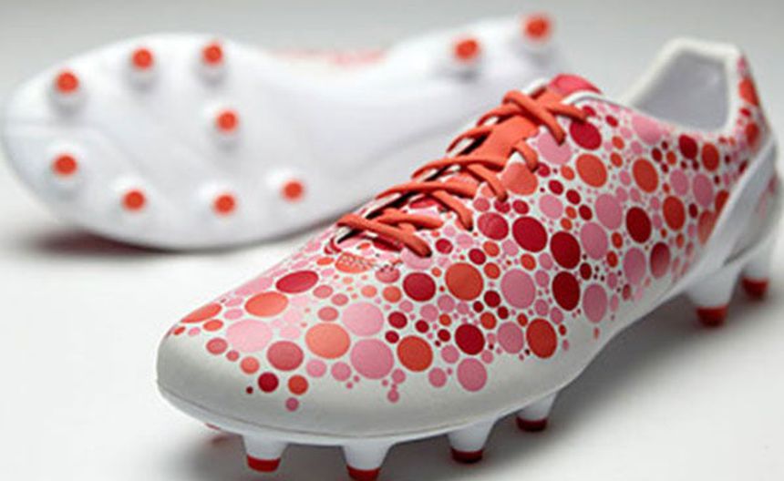 Los zapatos tienen un diseño con puntos en varios tonos de color rosa. Según Puma, el distintivo CAMO en las botas disfrazará la última tecnología evoSPEED y se dará a conocer en una cantidad estrictamente limitada.