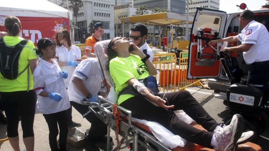 "Uno de los corredores, un soldado israelí de 29 años, falleció pese a los intentos por salvarle la vida y otras doce personas están en estado grave y cuatro de ellas con respiración asistida", indicó la Cruz Roja de Israel.