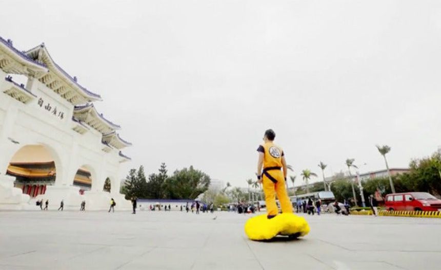 Un aficionado a Dragon Ball en Taipéi decidió crear su propia 'nube voladora' real, como la que usaba Goku en la famosa serie.