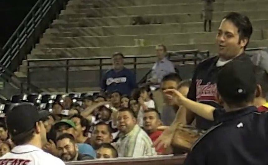 Un fanático de las Águilas que se encontraba en la primera fila tomó una bola que caía justo donde se encontraba él, y evitó que Chris Retherford primera base de las Águilas la tomara para concretar un out.