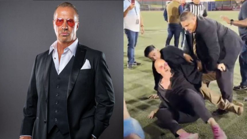 Momentos después, un hombre derribó violentamente al manager y lo golpeó mientras lo tenía en el suelo.