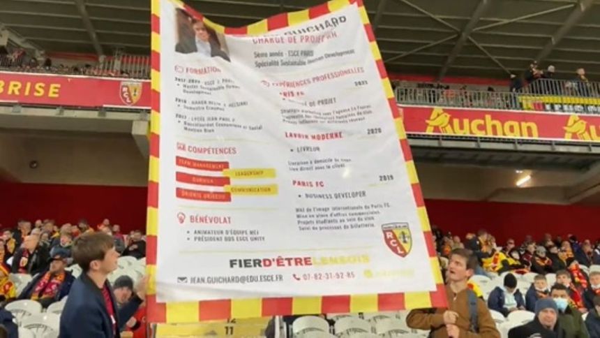 Fanático del Lens promociona su CV con gigantesca pancarta en estadio
