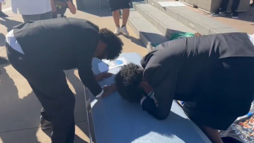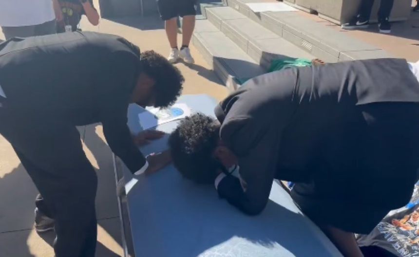 Three dudes brought a coffin to American Airlines Center. They’re playing “See You Again.”