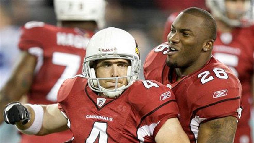 Arizona (5-10) estaba en graves problemas, pero el novato John Skelton, en cuarta oportunidad y 15 por avanzar lanzó un pase de 26 yardas al también novato Max Komar y los Cardenales avanzaron hasta quedar cerca del alcance de Feely. El pateador, quien acababa de anotar un gol de campo de 49 yardas, ha fallado tres intentos en la temporada, entre ellos uno de 49 yardas el sábado.