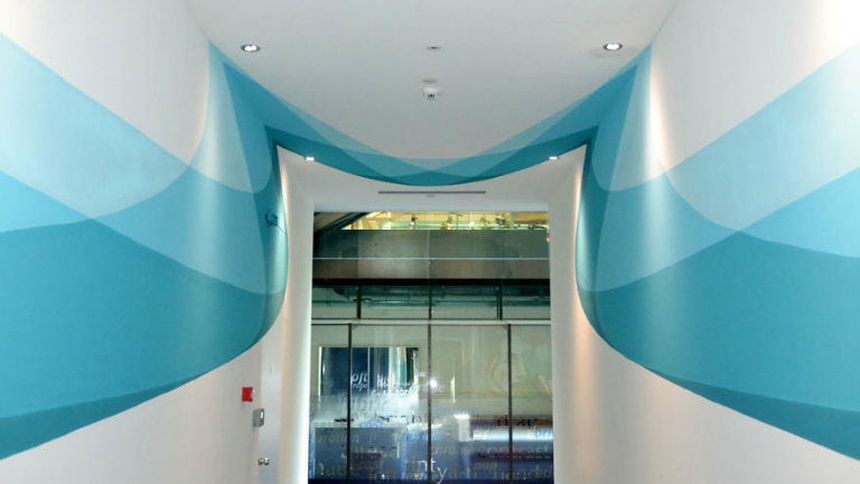 En el edificio donde se encuentran las oficinas de Northface y Vans en Stabio, Suiza, se dibujó una figura que se ve de manera muy distinta según el ángulo desde el cuál se mire.