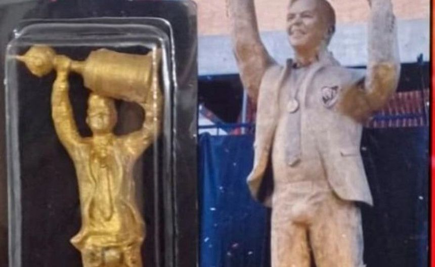 La escultura ha generado polémica por resaltar los atributos del entrenador argentino