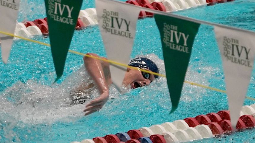 Lia Thomas nadando en la primera etapa del relevo de estilo libre | AP