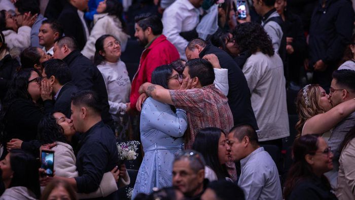 El emblemático recinto, acostumbrado a conciertos y espectáculos, cambió las luces del escenario por votos de amor y copas al aire, mientras la jefa de Gobierno, Clara Brugada, fungió como testigo principal de las uniones.