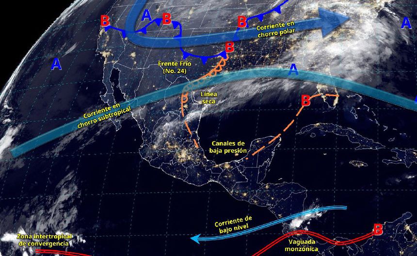 “La onda fría será generada por una masa de aire ártico que impulsa al Frente Frío número 24, el cual ingresará a México y se desplazará sobre la península de Yucatán, el norte, noreste, oriente, centro y sureste del país”, reportó.