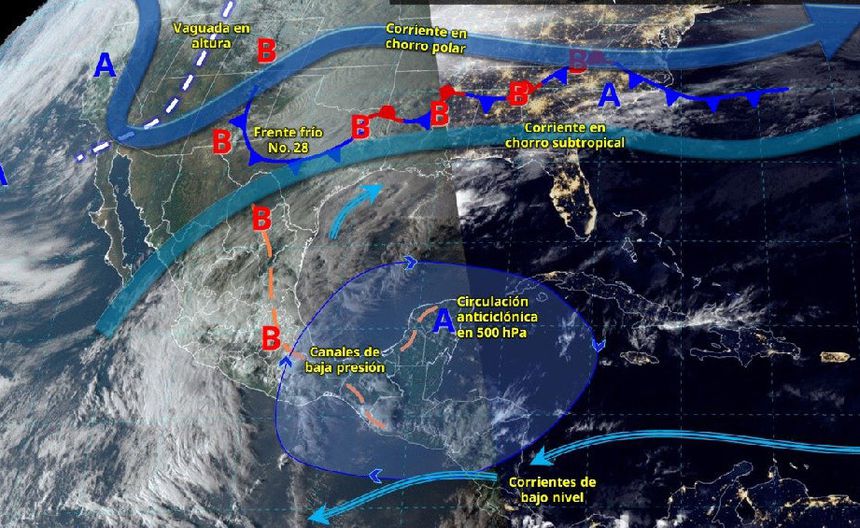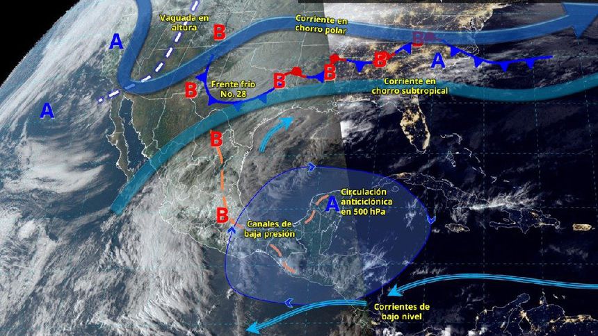 Finalmente, se prevén lluvias intensas (de 75 a 150 mm) en Puebla, Veracruz, Oaxaca, Chiapas y Tabasco; muy fuertes (de 50 a 75 mm) en Hidalgo, Campeche y Yucatán; fuertes en Querétaro, Tlaxcala y Quintana Roo; chubascos en Tamaulipas, San Luis Potosí, Guanajuato y Guerrero, así como lluvias aisladas en Nuevo León, Estado de México, Ciudad de México, Morelos y Michoacán.