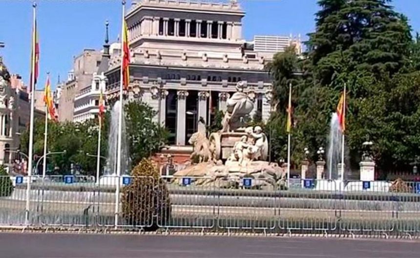 Fuente de Cibeles es protegida con vallas ante eventual festejo del Real Madrid