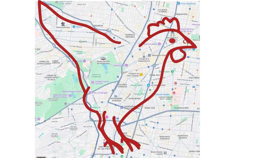 En redes sociales ha comenzado a hacerse viral la imagen de una parte del mapa de la Ciudad de México sobre la que se dibujó un gallo, señalando que, mientras te ubiques dentro de las zonas que abarca el trazado del animal, estarás bien... o al menos eso es lo que muchos creen.