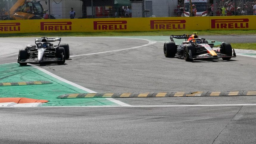 A falta de 15 minutos para terminar la primera sesión de prácticas, el conductor de Mercedes se encontraba detrás del mexicano en las curvas 1, 2 y 3. Como el británico llevaba mejor ritmo, Checo tuvo que hacerse para el lado izquierdo al salir de la tercera curva para dejar pasar a George, maniobra que realizó de manera correcta.