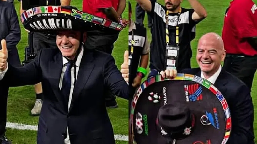 Fue en medio de todos los festejos por parte de la Selección Mexicana cuando el presidente estuvo conviviendo con los aficionados restantes en las tribunas del NRG Stadium; fue entonces cuando las cámaras captaron el momento, pues Infantino ya posaba con el sombrero puesto mientras mostraba una sonrisa en el rostro.