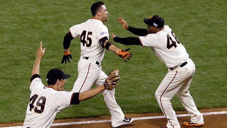El venezolano Pablo Sandoval conectó un sencillo para abrir el noveno episodio ante Michael Wacha, quien cumplió su primera aparición con los Cardenales en la postemporada. Después de un out Brandon Belt recibió un boleto, para que llegara a la caja de bateo Ishikawa, quien puso en órbita un lanzamiento con cuenta de 2-0.