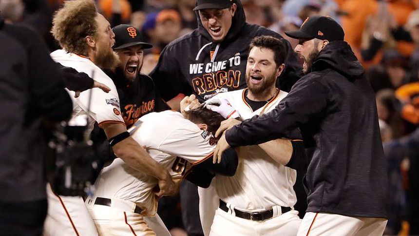 Todos los jugadores de los Gigantes fueron a amontonarse con Joe Panik en el plato para un festejo al que están habituados en situaciones límite en el mes de octubre. La temporada de San Francisco se prolongó un día adicional.