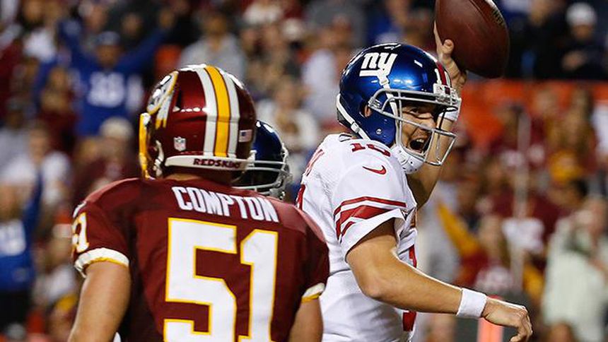 Eli Manning lanzó para 300 yardas y cuatro touchdowns y los Gigantes de Nueva York apalearon 45-14 a Washington en el inicio de la Semana 4 de la NFL.