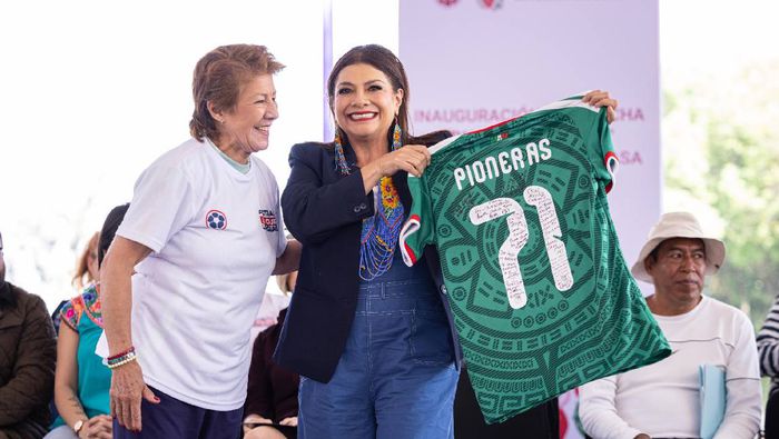 Hoy podemos decir que el deporte y el futbol cambiaron todo, a ellas las hizo campeonas, transformó y hermanó a las que eran rivales, las de Inglaterra. Transformó a México en un país en el que hoy celebramos que vamos a inaugurar, por cuarta ocasión, un Mundial”, señaló la mandataria capitalina.