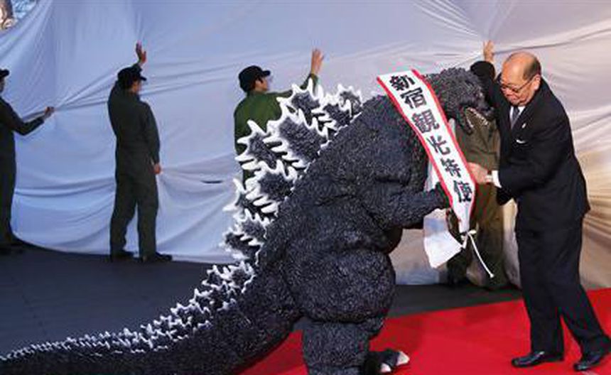 En una ceremonia de premiación junto a la gran cabeza de Godzilla, un actor enfundado en un traje de reptil caminó junto al alcalde de Shinjuku. Sin embargo, un directivo de Toho aceptó el certificado de residencia en su nombre ya que las garras del traje no estaban diseñadas para sostener nada.