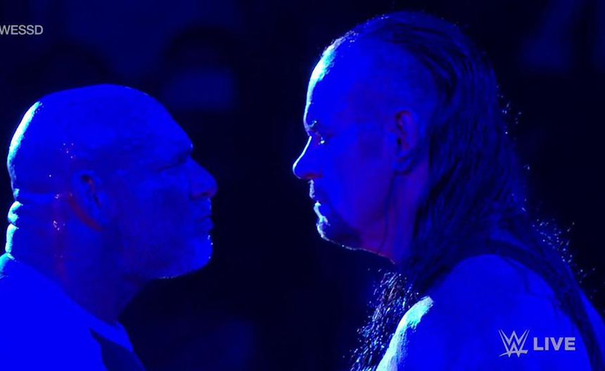 Por primera vez en la historia, el 'Mito' estuvo en el show azul de la WWE para mencionar que Taker sería el siguiente en descansar en paz. Posteriormente, se escucharon las campanadas y el 'Ente' entró al ring para encarar a su próximo rival.