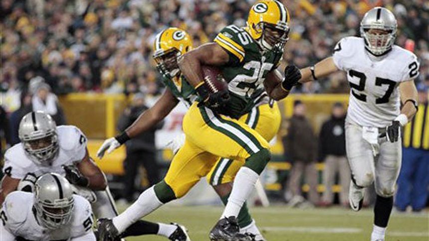 Aaron Rodgers lanzó para 281 yardas con dos touchdowns y una intercepción en menos de tres cuartos completos, Ryan Grant tuvo dos anotaciones por corrida y Charles Woodson recuperó un balón ante su ex equipo para que los Empacadores de Green Bay se impusieran 46-16 a Raiders de Oakland.