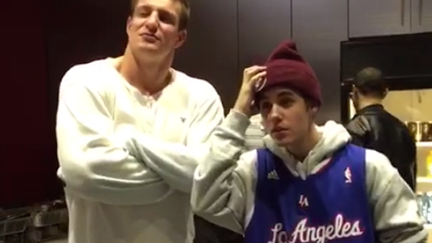 El ala cerrada de los Patriotas, Rob Gronkowski, convivió con Justin Bieber en el partido de los Clippers en Los Ángeles, lo cual ha preocupado a los aficionados de Nueva Inglaterra.