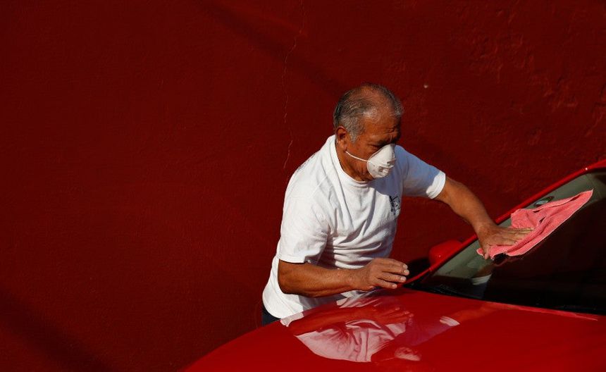 Persona limpia su coche usando cubrebocas | AP