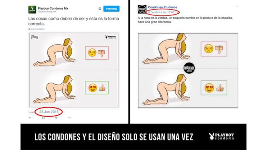 La marca 'Playboy Condoms' denunció en redes sociales un plagio de la marca 'Prudence', al utilizar una imagen que ellos habían publicado hace un año.