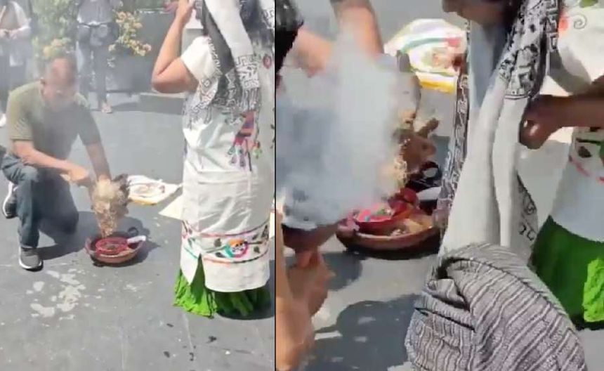 Fue a mediodía de este 24 de abril, que en el segundo piso de la Cámara de Senadores se realizó un ritual como parte de la ofrenda por el Día de la Tierra (Tláloc) y según un video compartido por la periodista Leticia Robles, se puede ver a una mujer con vestido típico cortar con un cuchillo el cuello de un ave, para luego sus ayudantes hacer una serie de invocaciones con incienso mientras el animal se está desangrando.