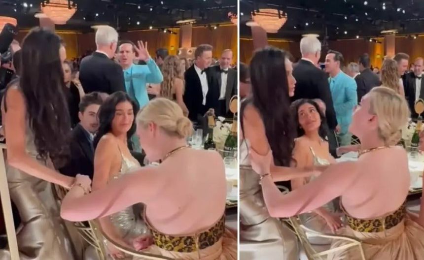 A pesar de que parecía que Moore miraba al joven de 27 años, no interactuaron físicamente. La actriz luego compartió palabras con el novio de Jenner, Timothée Chalamet, que también estaba sentado en la misma mesa. "¡Felicidades! Eso fue increíble", le dijo la estrella de "Wonka" a Moore, mientras le daba una palmadita en la mano.