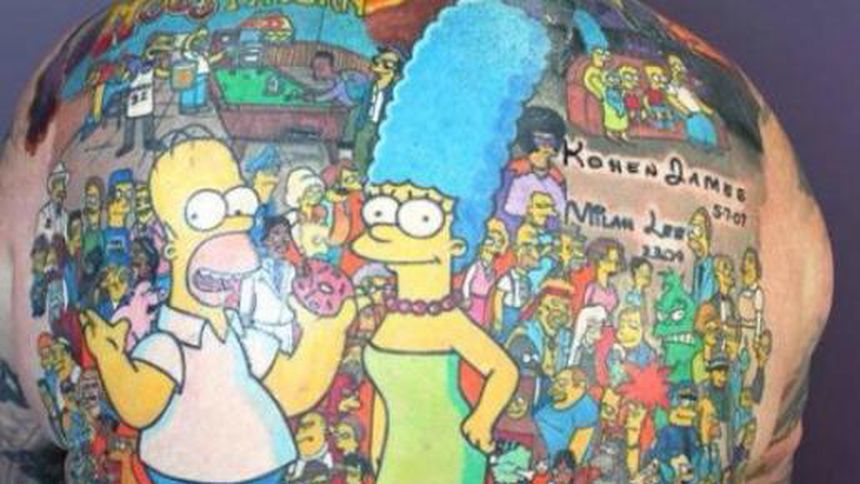 Michael Baxter se tatuó en la espalda a todos los personajes de los Simpson y algunos lugares clásicos de Springfield como la Taberna de Moe, además del famoso 'gag' del sofá, buscando romper el récord mundial por el mayor número de tatuajes de personajes de la misma serie.