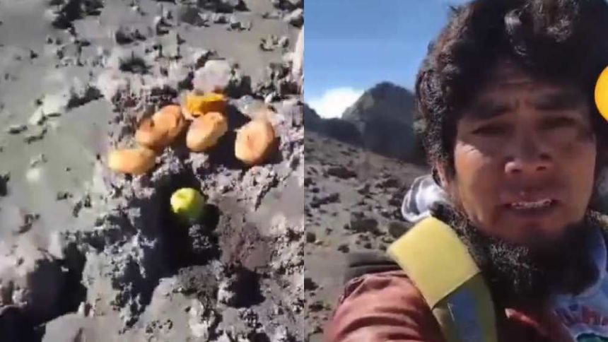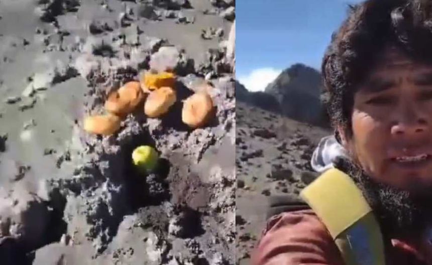 “Le trajimos su ofrenda hasta acá, hasta el cráter, esperamos que esté contento. Se siente un gran miedo, se siente un gran miedo”, dice el hombre en el video mientras está en lo más alto del volcán.