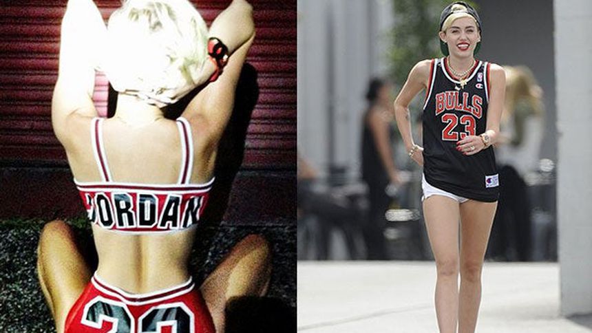 La actriz y cantante, Miley Cyrus, realizó un sexy homenaje al ex basquetbolista Michael Jordan, al utilizar un provocativo bikini similar al jersey que usaba MJ23 en los Toros de Chicago.